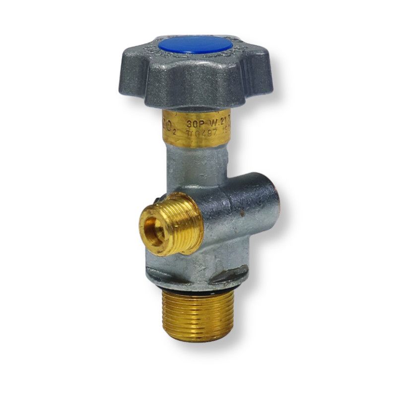 High pressure brass cylinder valve for Carbon Dioxide with residual pressure function. The valve complies to the 2014/68/UE and marked according to the 2010/35/EU directive.