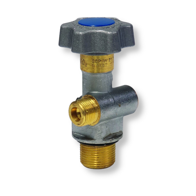 Valve with residual device with anti-return function in brass for high pressure Carbon Dioxide cylinders. The valve is marked T-PED ped in accordance with the procedures of Directive 2010/35/EU. See more...